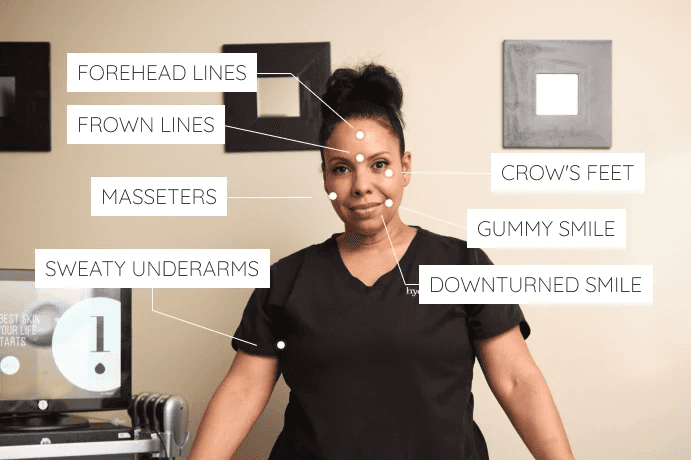 Targets crow's feet, forehead lines, frown lines, lip lines, neck bands, and more